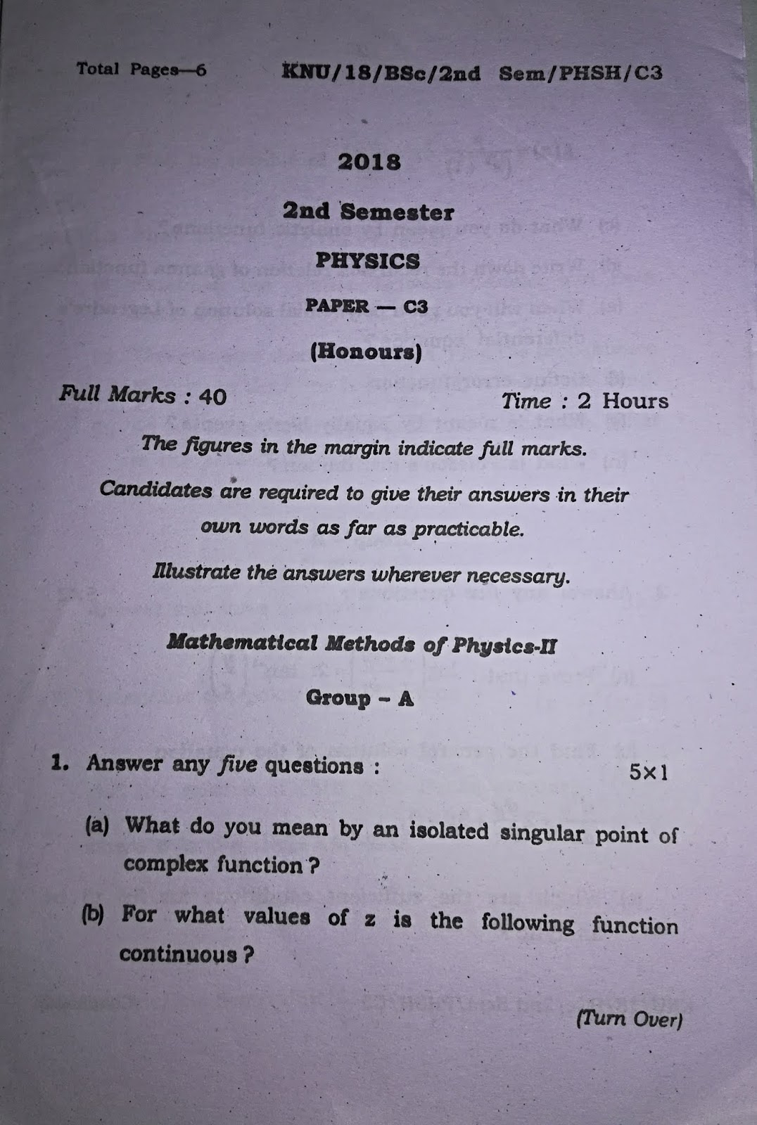 KAZI NAZRUL UNIVERSITY OLD PAPERS BSC PHYSICS HONOURS 1ST SEMESTER PAPER-C2 (MECHANICS) YEAR-2018